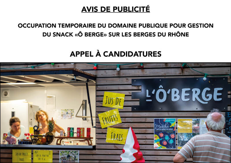 Le présent avis de publicité a pour objet de porter à la connaissance des opérateurs économiques le projet de convention d’occupation temporaire du domaine public de la Ville de Guilherand-Granges pour la gestion snack sur les Berges du Rhône. Les candidats sont informés que la collectivité se réserve la possibilité de ne pas donner suite au projet.