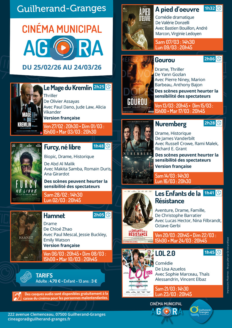 Les billets sont également disponibles à la salle Agora (222 avenue Clemenceau), aux horaires d’ouverture et le jour du spectacle.