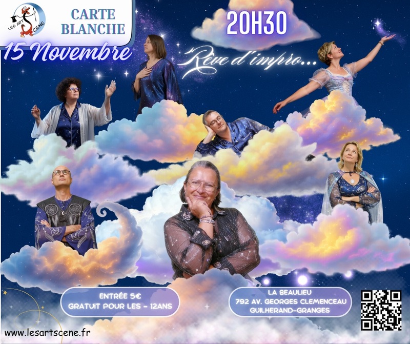 Fermez les yeux… imaginez des nuages, des étoiles, un soupçon de folie et beaucoup d’imagination. Les Artscène vous invitent à une soirée hors du temps : un rêve d'impro, où tout peut arriver, même l’imprévu. Des impros inspirées, drôles, touchantes ou complètement lunaires. Une seule règle : se laisser porter par l’imaginaire.